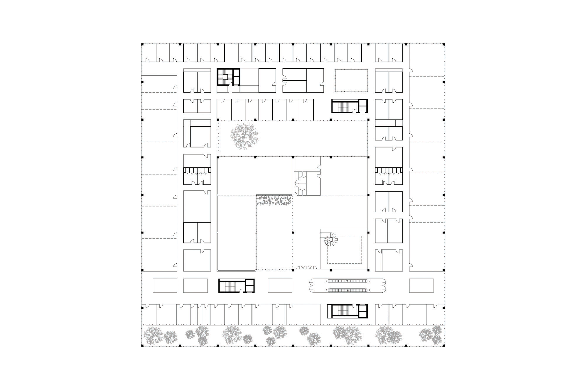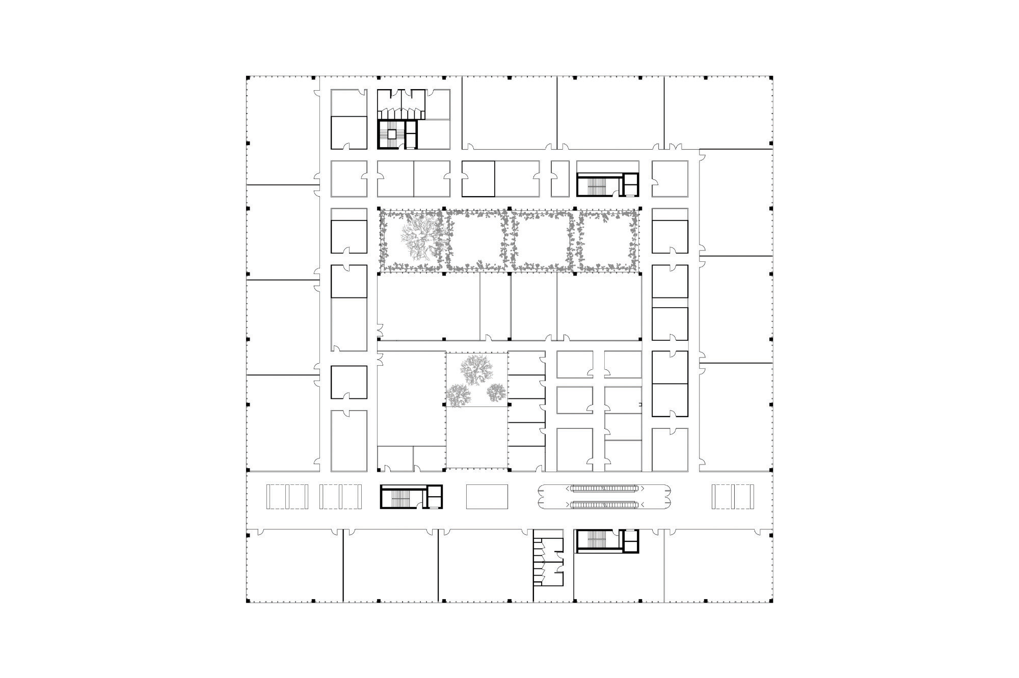 The building is compact and efficient with a clear and simple organization of spaces, structure, installations, routes and logistics. The programme has been organized as a stacking of functions. Each of the four levels contains a singular department with the research laboratories on the top two floors and the educational departments on the floors below. Patios, light wells and openings in the building establish views and connections between the different levels, to the sky above, to la Chambre below, and to the landscape beyond.