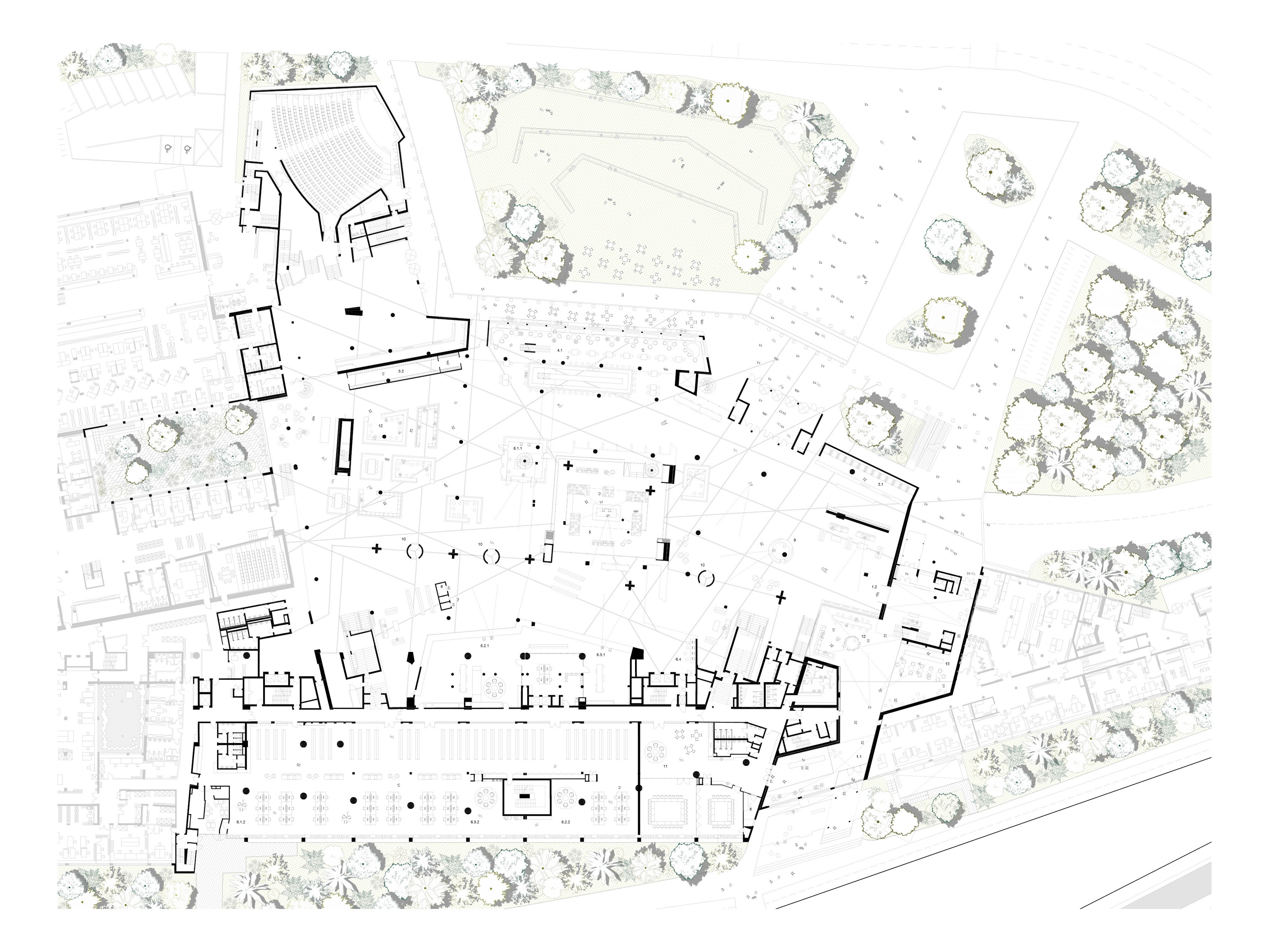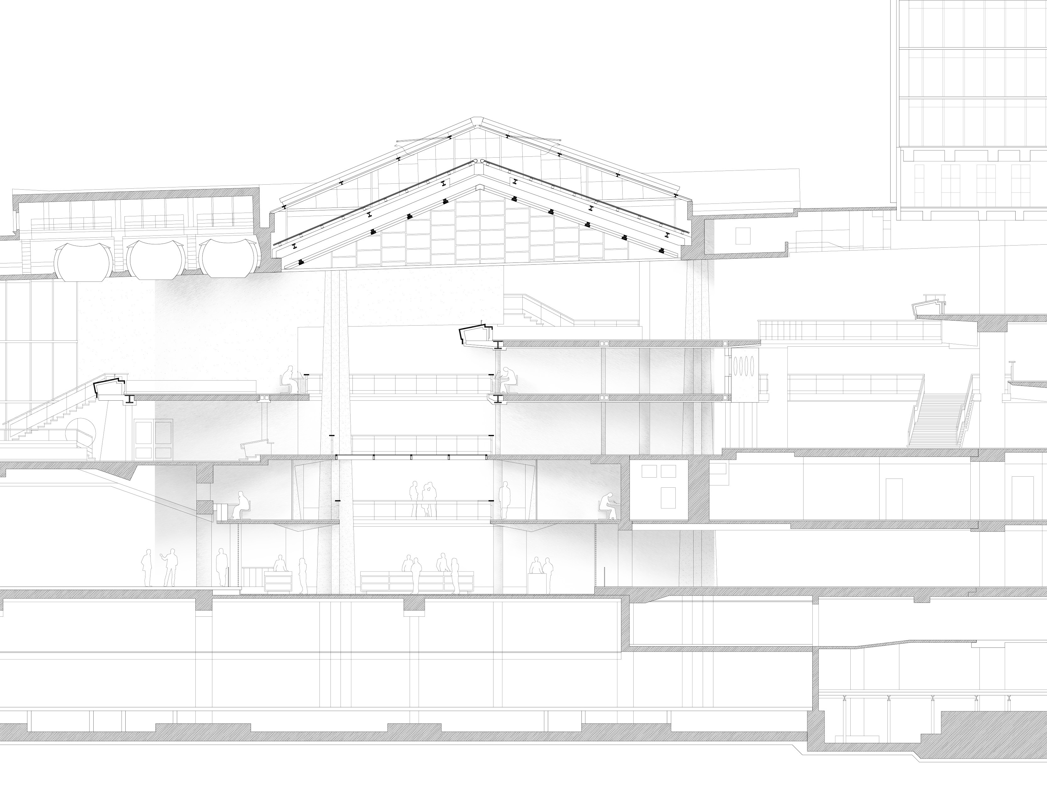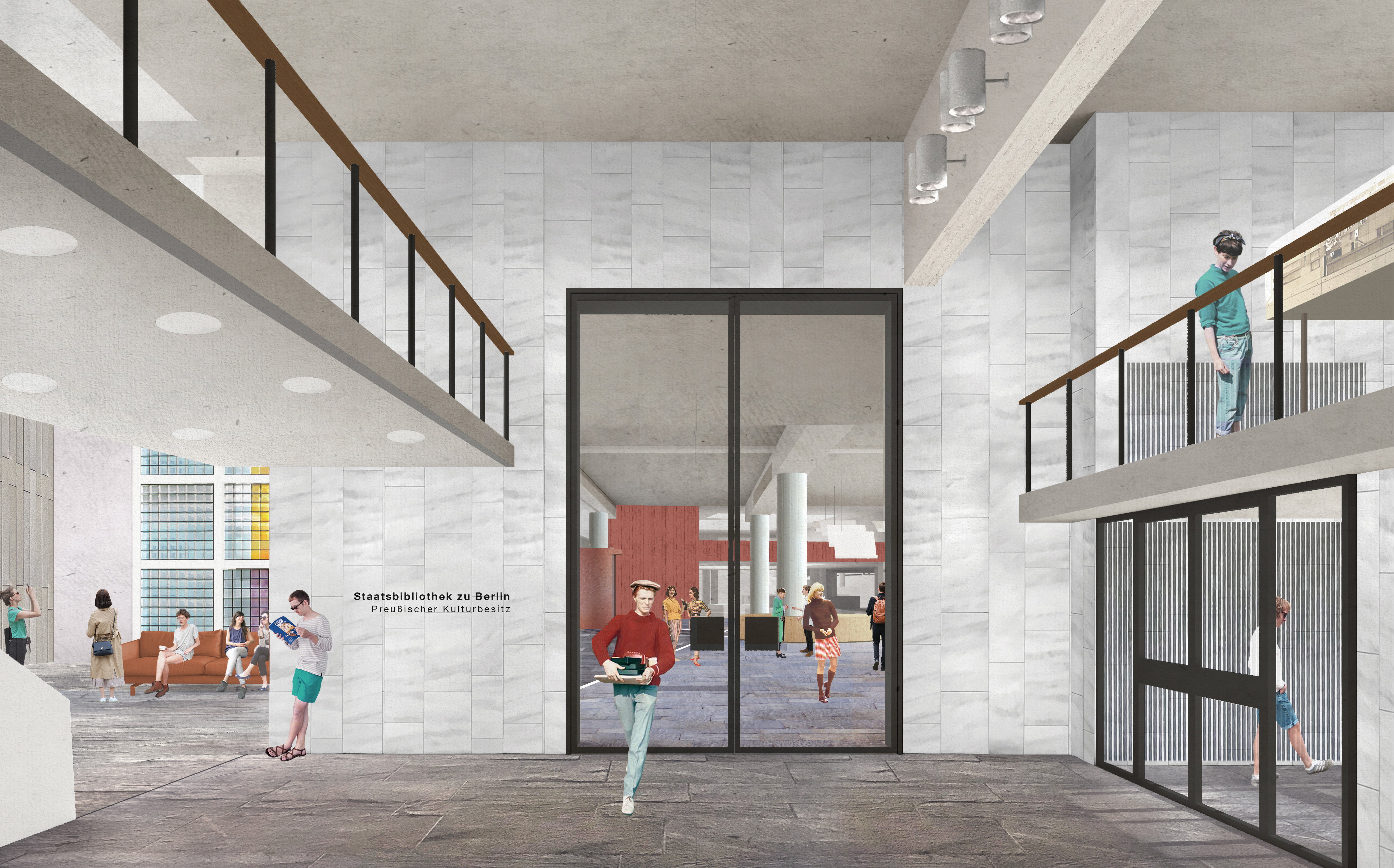 The proposed intervention for the Berlin State Library pays homage to the urban relationship between Potsdamer Platz and Kulturforum. The structure, called “Little Scharoun”, offers spaces for visitors to linger and enjoy. Unobtrusively and elegantly, the intervention fulfills multiple functions as an entrance for the state library, foyer, conference centre, and office.