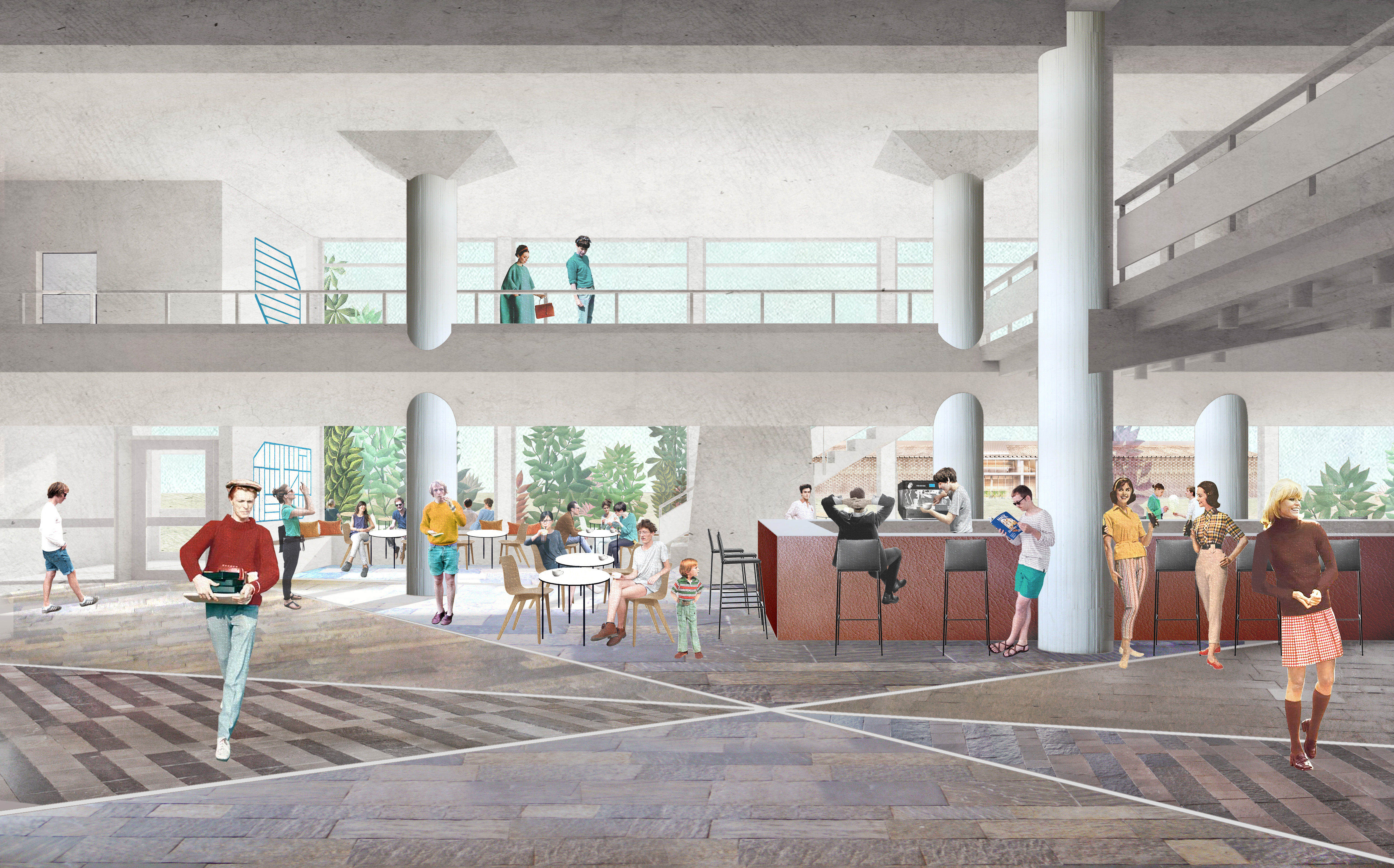 The design is based on the introduction of three areas divided according to noise intensity: the library as a ‘quiet’ area, the foyer as a ‘whispering’ area and the restaurant as a ‘buzz’ area oriented towards the façade. Transparent but effective sound insulation is installed to shield the library's quiet area. The foyer is transformed into an inviting entrance where visitors can move freely - shop, meet, study or get information about the library; without disturbing the quieter spaces. This design maintains the original spatial qualities and the core function of the State Library.