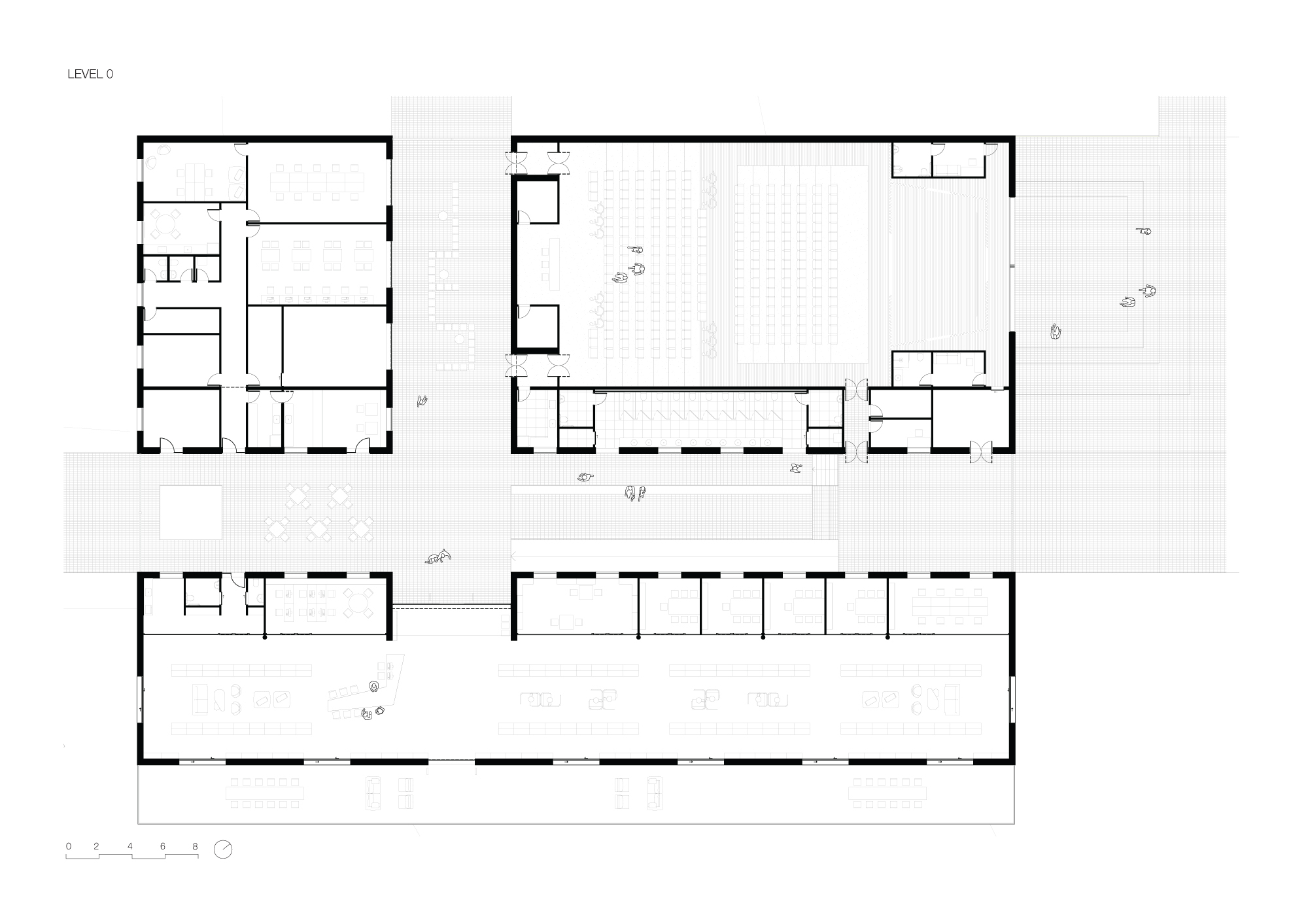 UFSCAR Library – Campus Lagoa do Sino in São Paulo, Brazil, serves as the new heart of the campus, bringing together a public plaza, library, auditorium, and the university’s administrative offices. Its design blends enclosed volumes with open-air spaces, encouraging social interaction and enriching campus life. A generous roof structure, detached from the building, creates a 1.5-meter air cushion and allows natural ventilation to maintain thermal comfort throughout the day. The building combines traditional rammed earth and timber, uniting time-honoured vernacular techniques with contemporary architectural solutions. Rammed earth—a millennia-old construction method—involves compacting layers of damp soil between wooden forms to create thick, stable walls with outstanding thermal and acoustic performance.