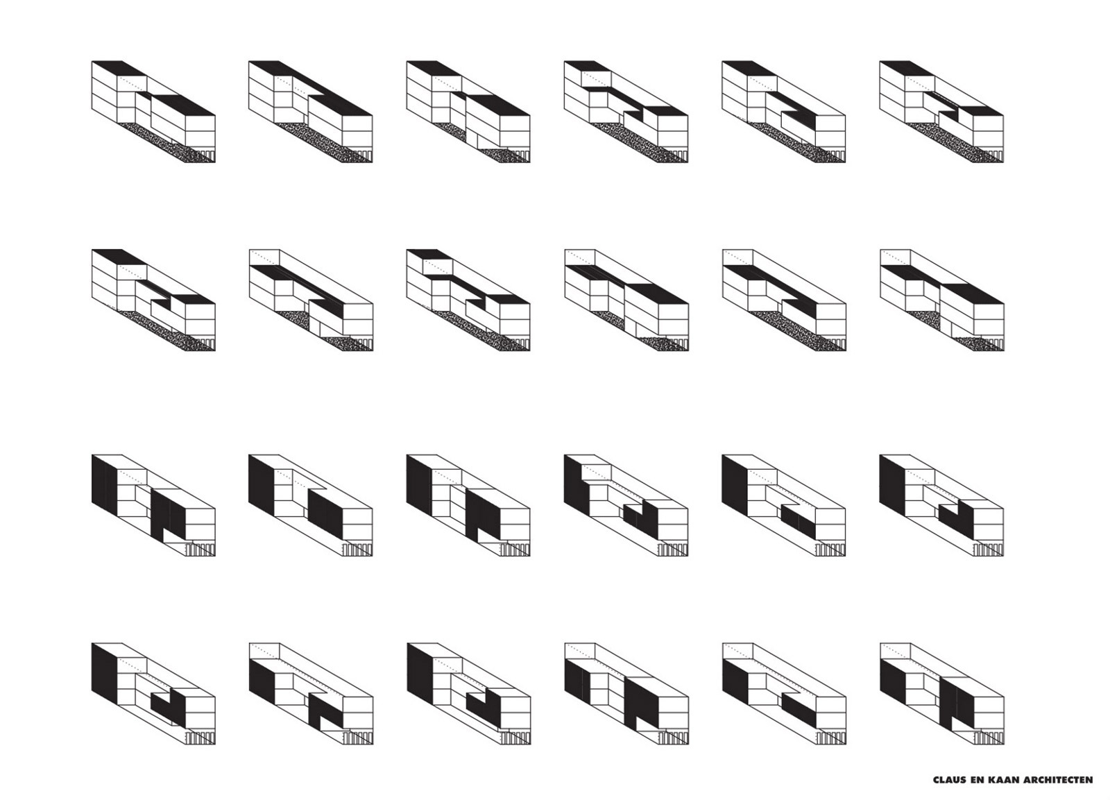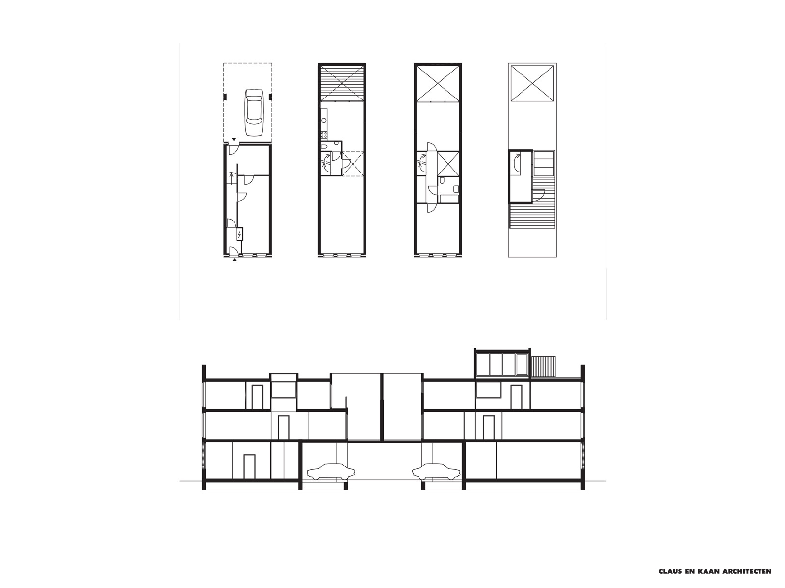 The goal was to design an archetype suitable for the plots set out by the master plan. The design solution proposed a dwelling of two principal forms that combined front façades, but allowed for variation in internal configurations. The project achieves clarity by the uniformity of the design, satisfying requirements set out in the master plan, but also creates a clear and even radical separation of inside and outside spaces, leaving no semi-public zones that all too often become the forgotten, dubious areas of the neighbourhood.