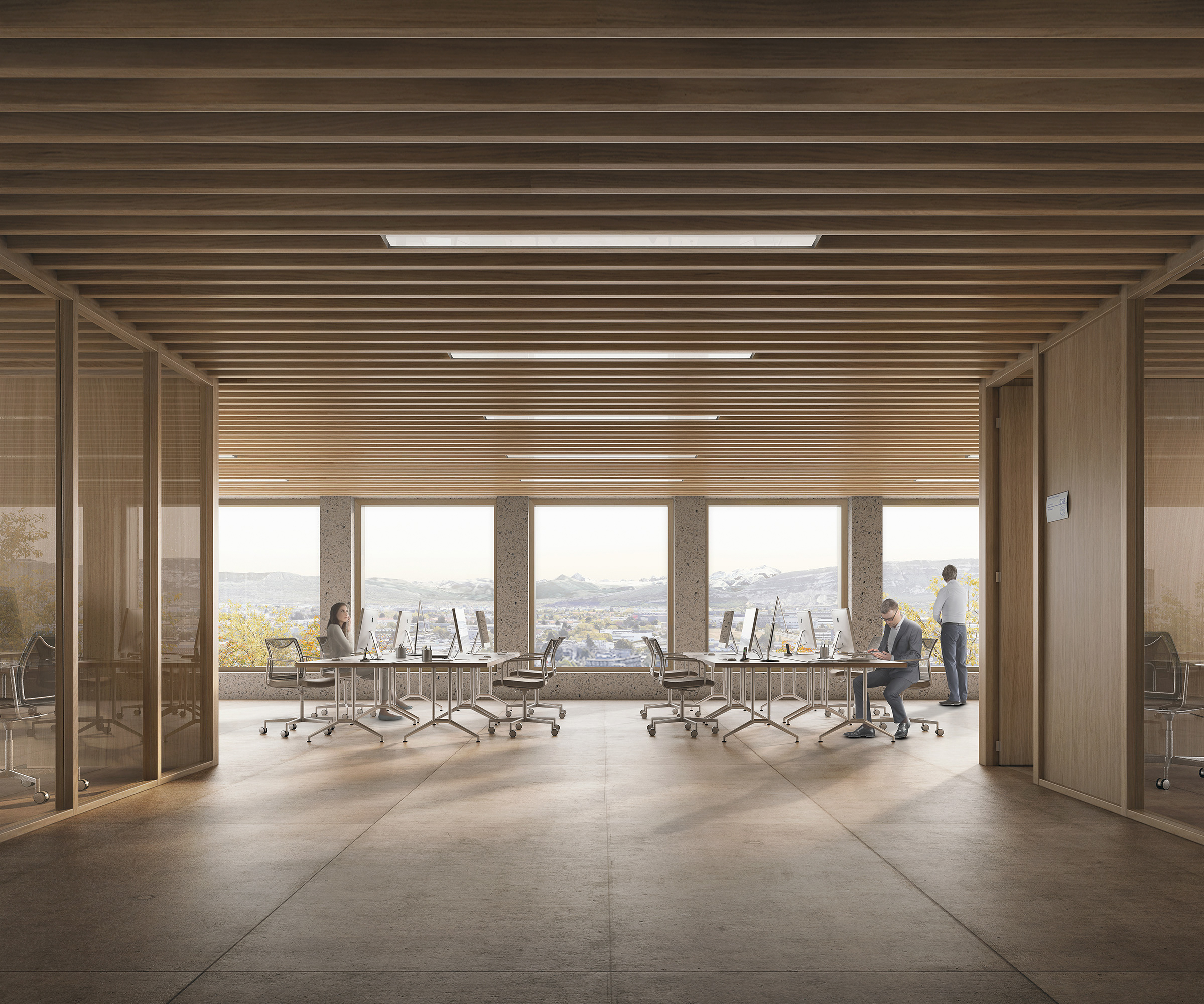 Spanning approximately 15,600 sqm, the design is compact and pragmatic, optimising the layout for each function while accommodating future growth. The building’s facades harmonise with the surrounding landscape, incorporating a modular grid system that ensures flexibility and adaptability. Building 140 represents a significant step forward for the Meyrin campus, combining innovation, sustainability, and functionality to support CERN’s mission of advancing scientific excellence and fostering knowledge exchange.