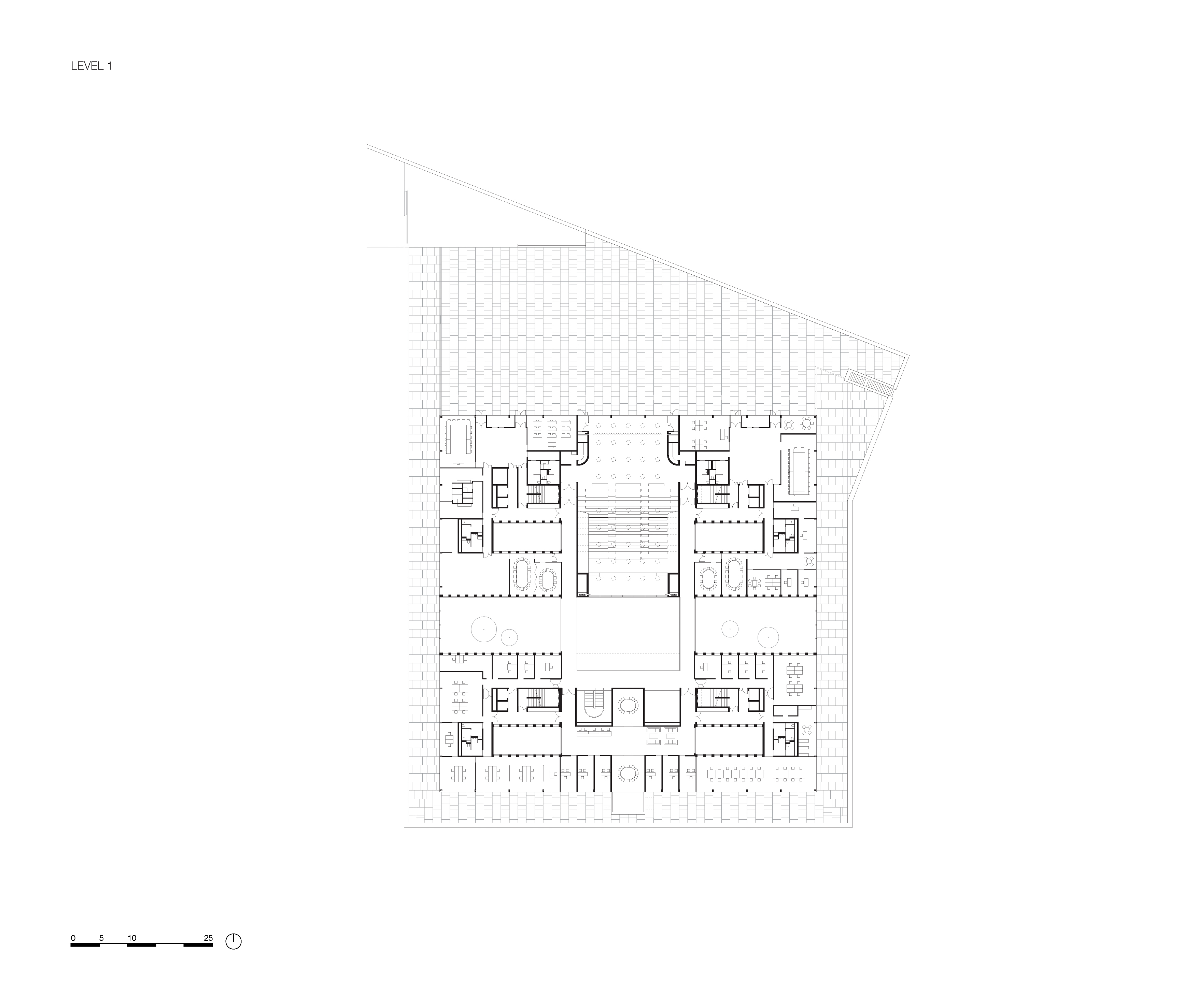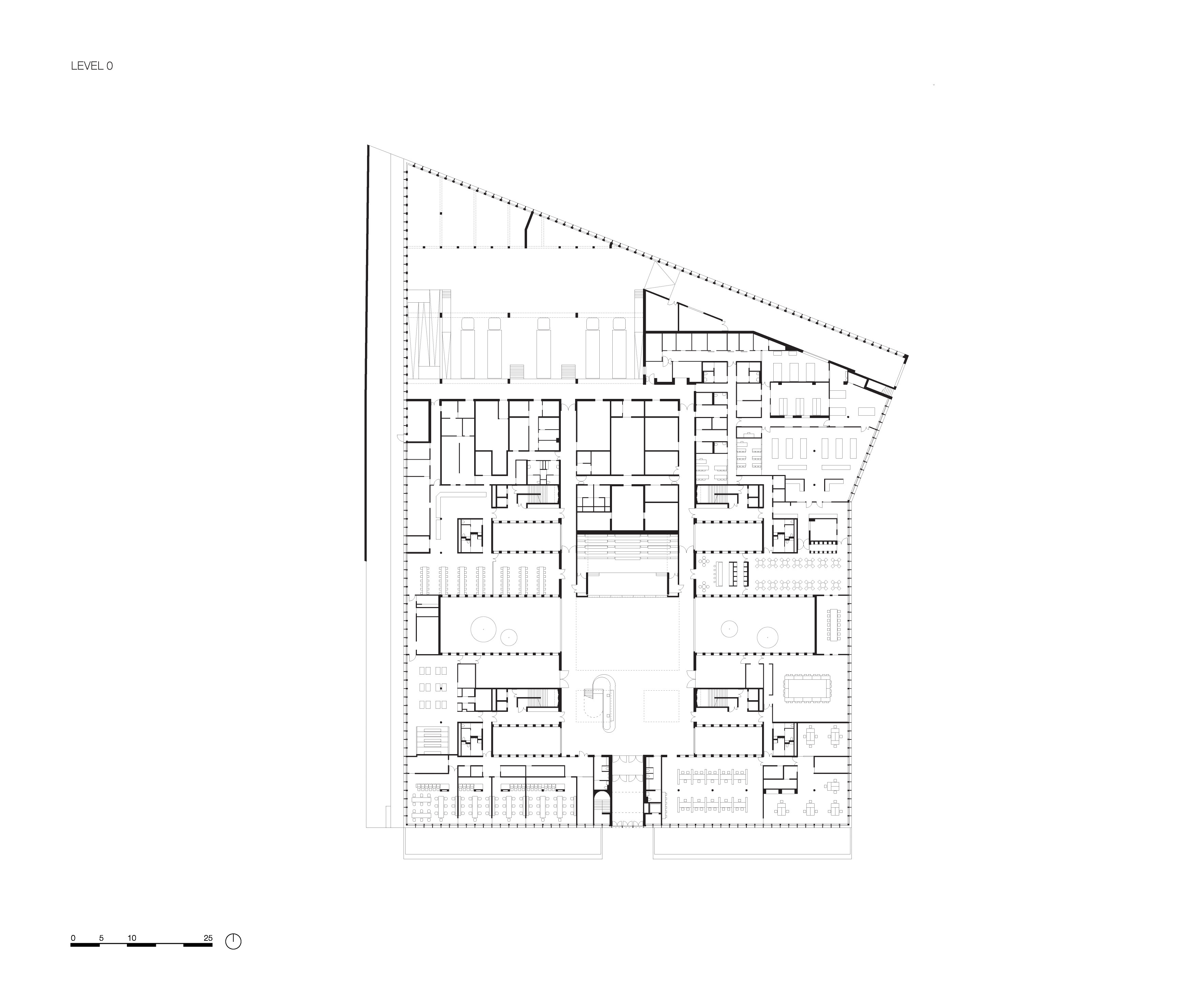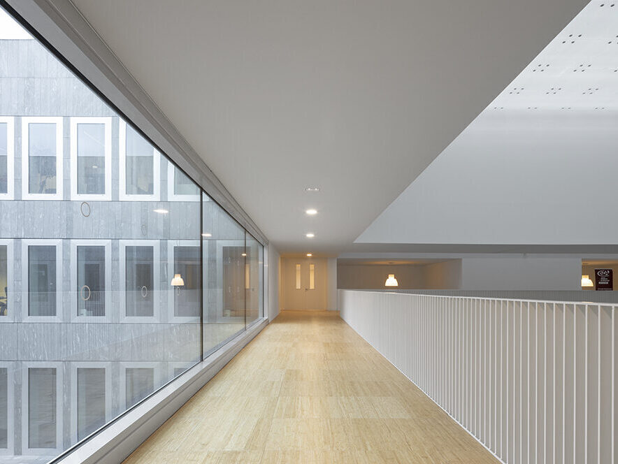 The building houses offices for the local and regional Chamber of Trades and Crafts and the associated training school, which had previously been scattered over different locations in the old city centre. Two separate entrances enable the coexistence of various users on site and offers them two public squares on different levels. Both entrances are connected by a linear succession of public spaces: the southern square, the entrance hall, the auditorium, and a wide opening overlooking the north terrace.