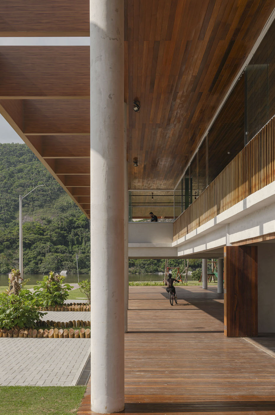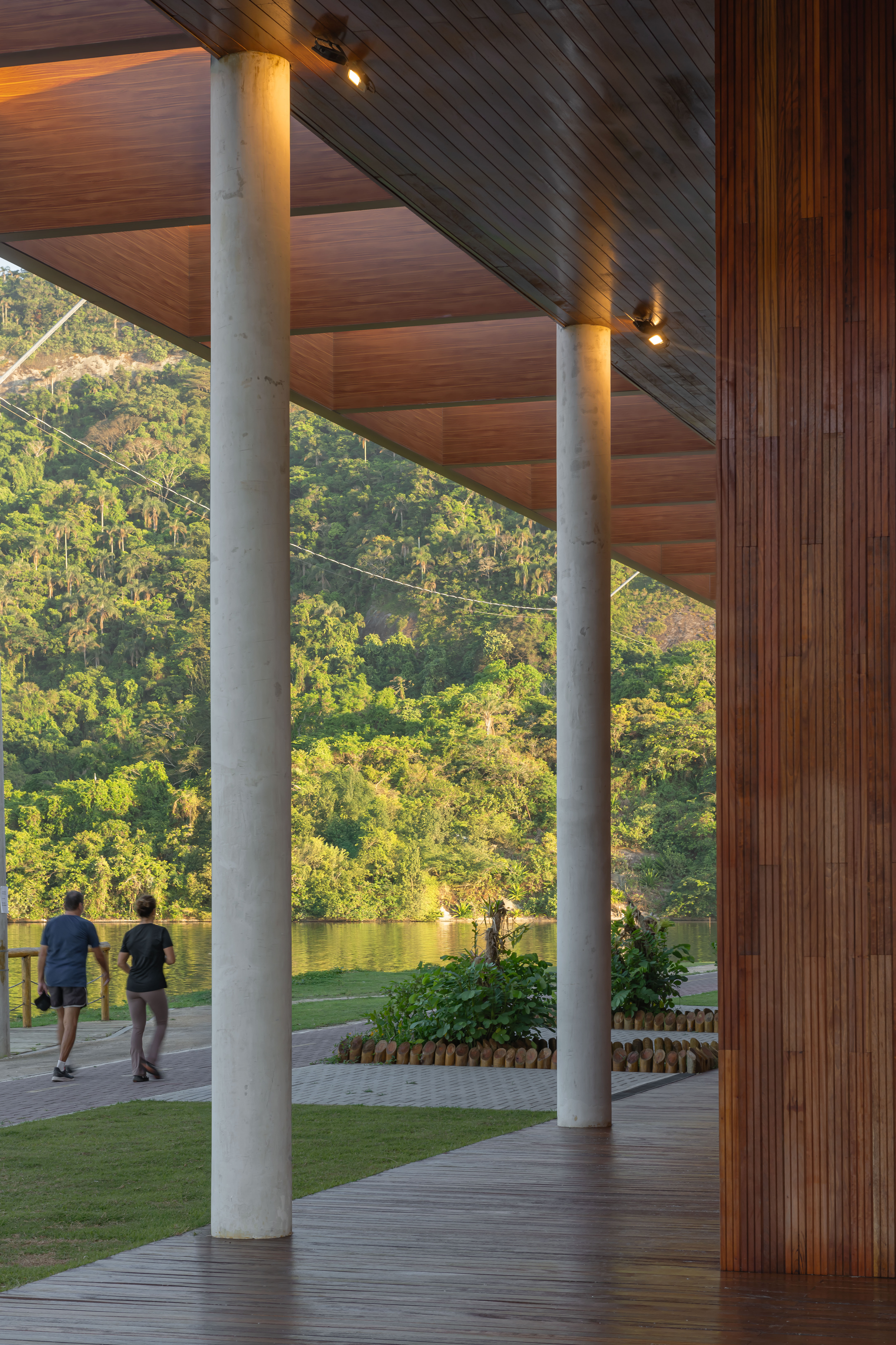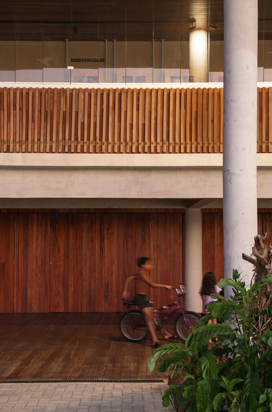 The Eco-Museum is a focal point of the redeveloped area and a tool for social inclusion that extends beyond the scope of the initial brief. The building is dedicated to the recovery and preservation of the lagoon and a place where this process can be constantly monitored by and actively taught to residents. Additionally, it provides a space for the fishermen’s community and various resident associations to gather and collaborate with municipal services. The building is conceived as a large, covered plaza with functional volumes placed in a way that enables seamless integration of the waterfront and the museum. In harmony with its lush environment, the locally sourced cumaru wood panelling of the Eco-museum completes the mixed structure of concrete columns and CLT slabs, contributing to its neutral carbon footprint.