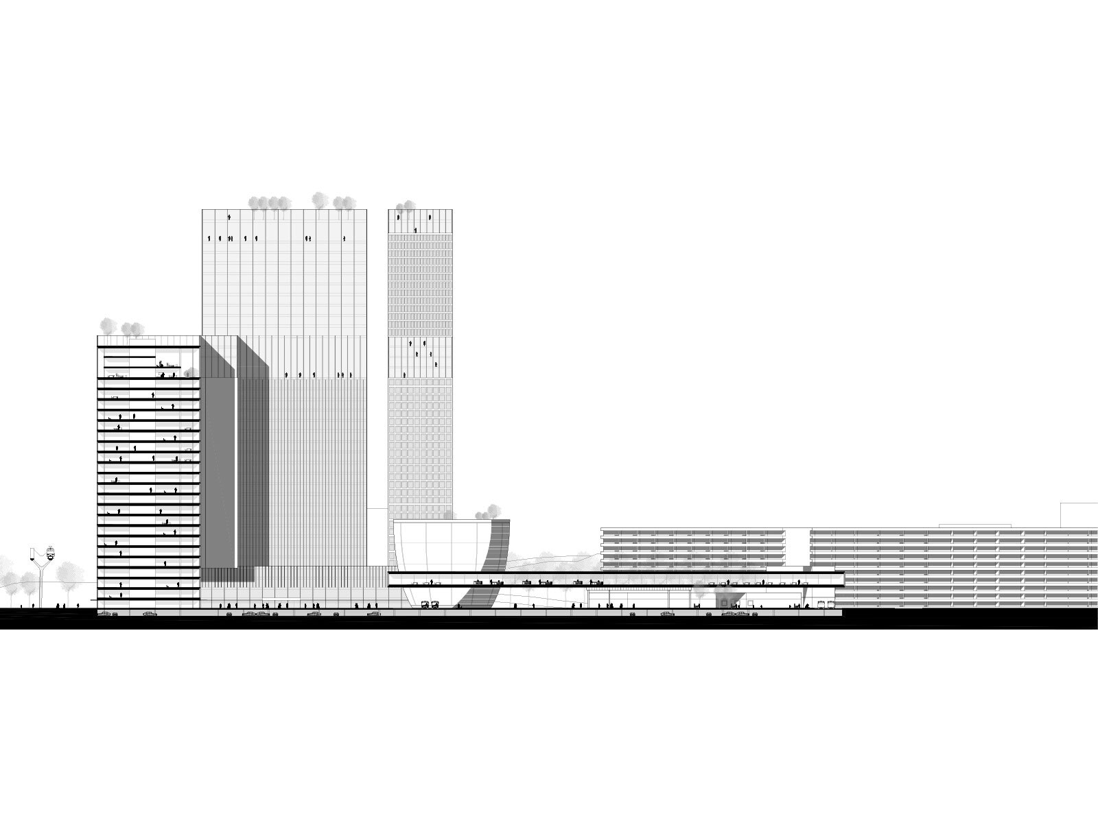A substantial part of City Hall’s administration offices will be relocated here, relieving not only the already over-burdened Paço Park, but also stimulating the neighbourhood's economic activity. Located alongside the terminal hub, a mall, convention centre, and hotel, as well as housing and offices are all organized around a public square, generating a diverse urban environment.