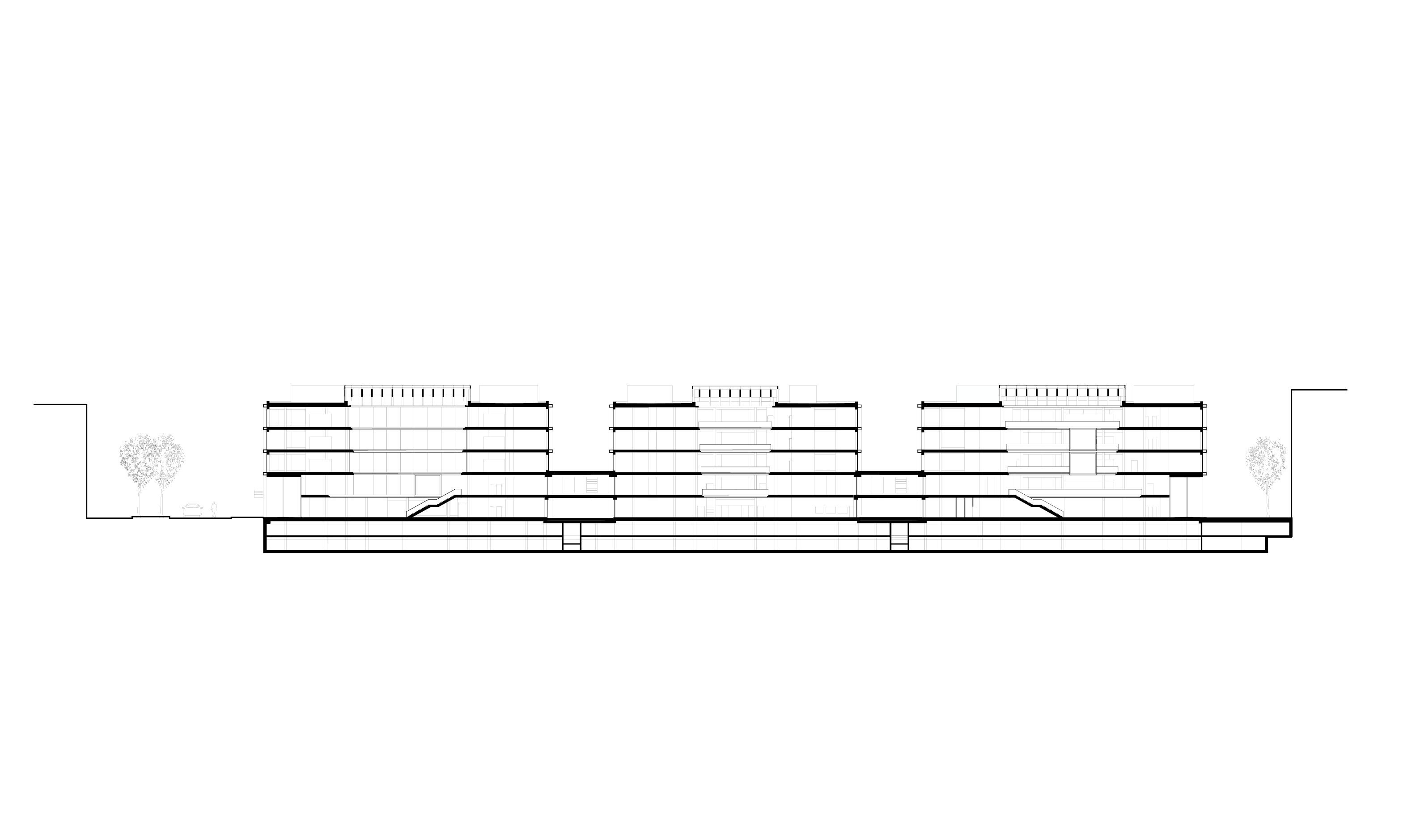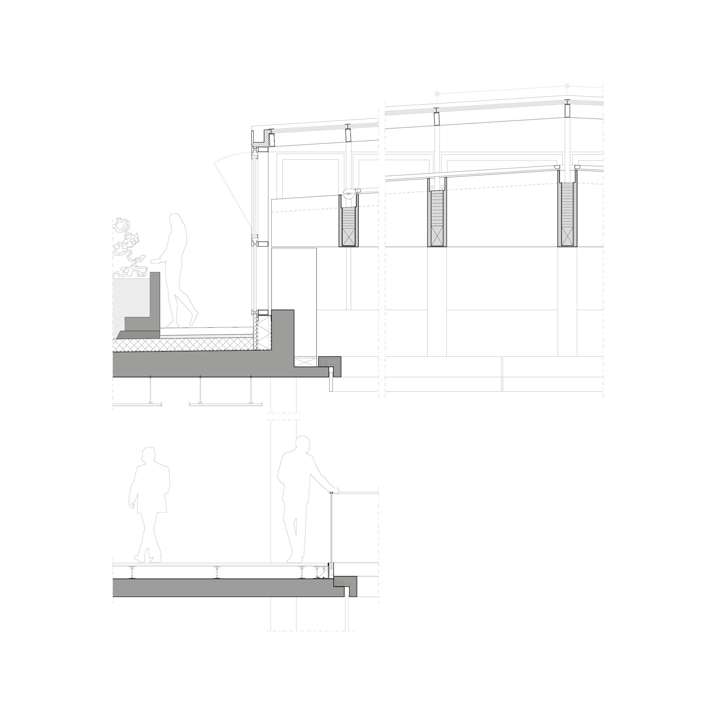 All the floors come together around large central atriums, which embody the social heart of the complex. Elegant ‘lanterns’ made of laminated timber beams crown the atriums, providing plenty of daylight and preventing heat accumulation. The buildings give way to green rooftop terraces for all tenants and provide views of the nearby Alps. Rooted in the rational appearance of the site’s industrial heritage, with generously proportioned openings and a high level of refinement, the iCampus ensemble blends with the existing urban fabric, offering a comfortable and future-proof work environment.