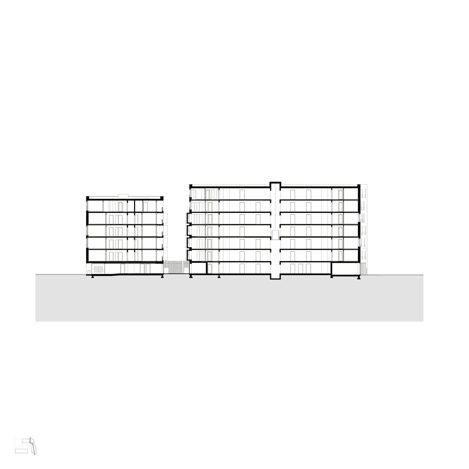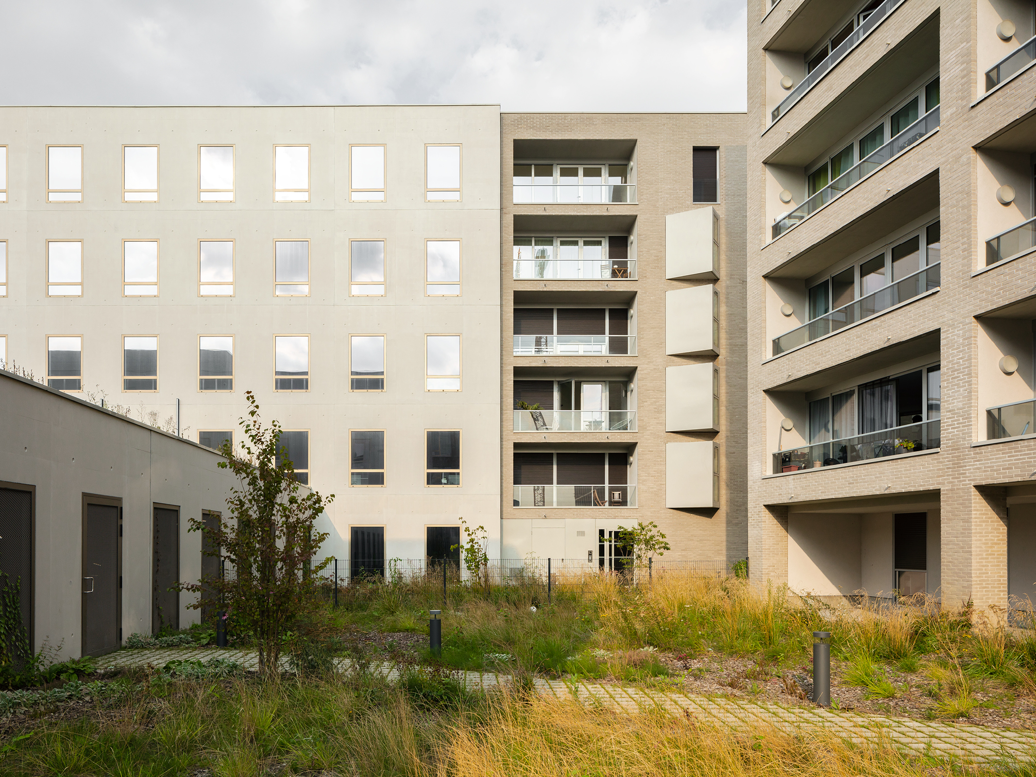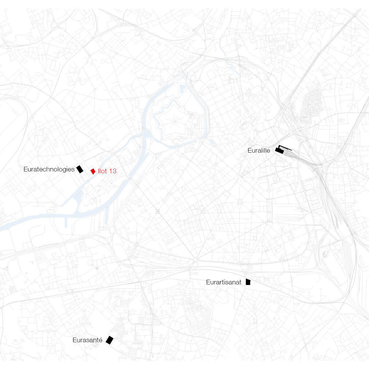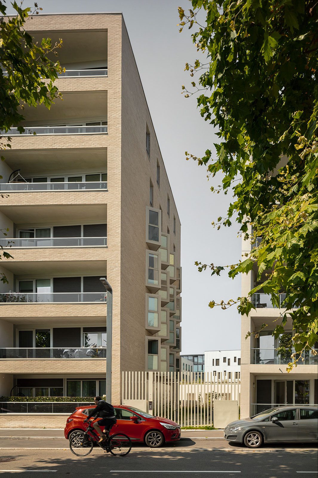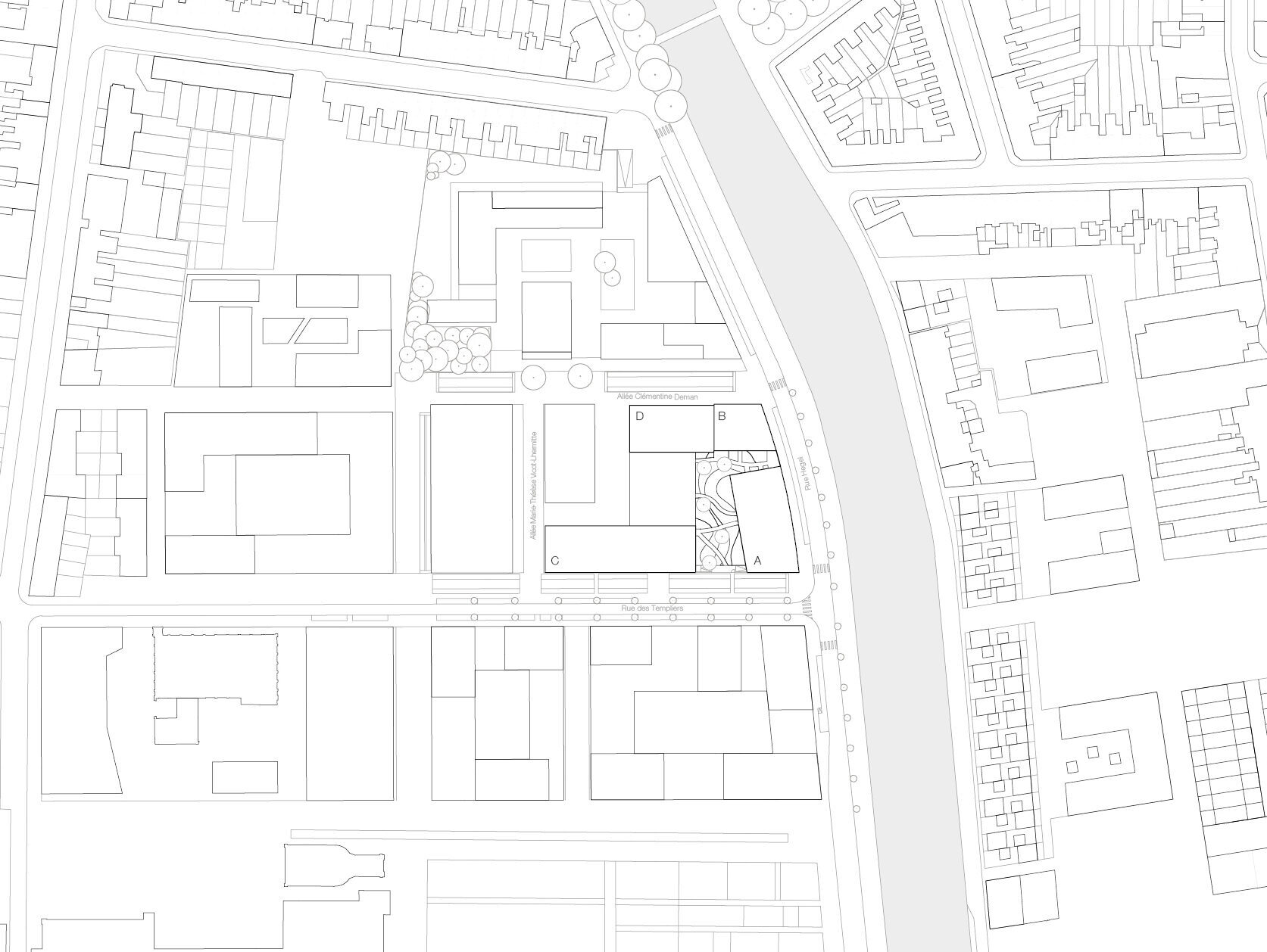 Based on a masterplan by Pranlas Descours Architectes and Bruel Delmar, the redevelopment of Rives de la Haute Deûle area in Lille proposes various public spaces along the canal. The urban pattern extends through different ‘function-defined plots’, or îlots, that are positioned on both banks along the green spaces. Such is the Îlot 13B, located on the south-eastern edge of the first completed sector of the development zone, overlooking the river canal and bordered by public roads.