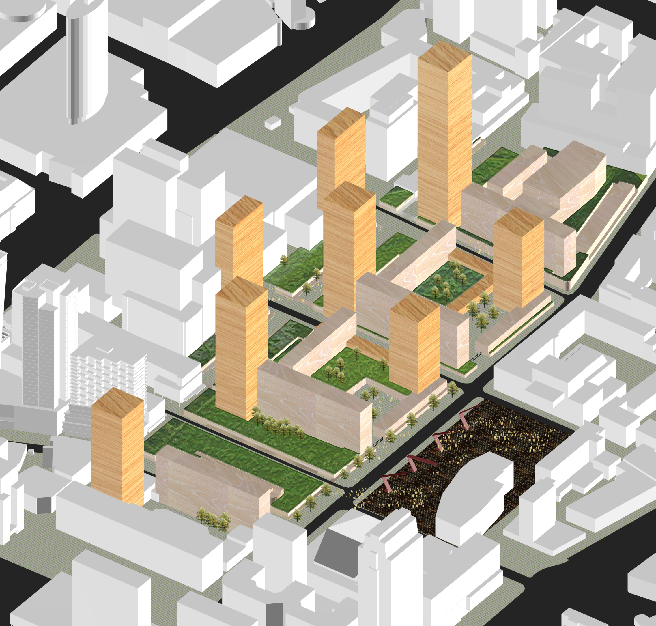 The Lijnbaanhoven is a redevelopment design for the Lijnbaan area in Rotterdam, the first pedestrian commercial area in Europe. It was originally planned by firms Van den Broek en Bakema and Maaskant during the 1960s. The project aims to revitalize the area by adding numerous residential units and integrating them into the existing commercial activity central to the area.