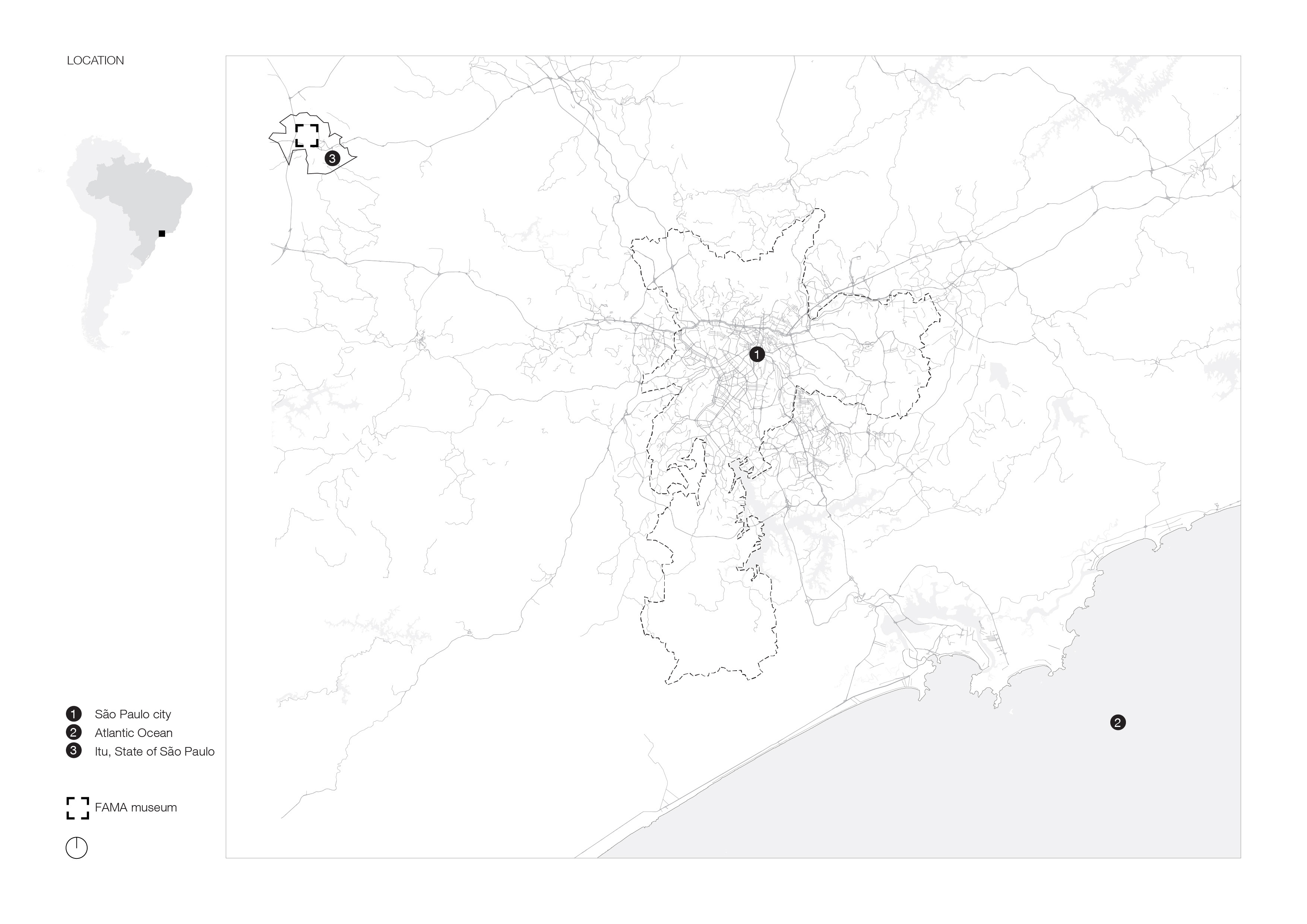 Established in 1911 and designed by French-Brazilian builder Louis Marins Amirat, the São Pedro jeans factory in Itu is a prominent example of early European-influenced industrial architecture in Brazil. After closing in the 1990s, the site was heritage-listed in 2003 and acquired in 2012 by artist and collector Marcos Amaro, who founded FAMA, Fábrica de Arte Marcos Amaro, to transform it into a space for artistic production.