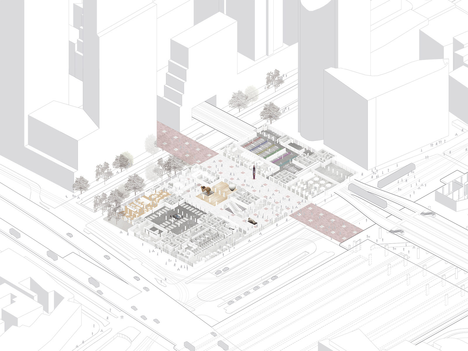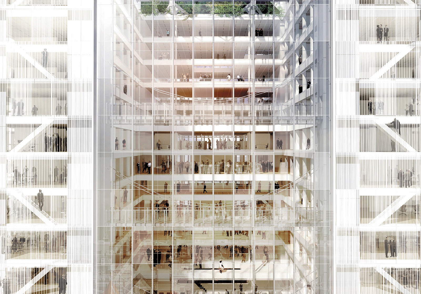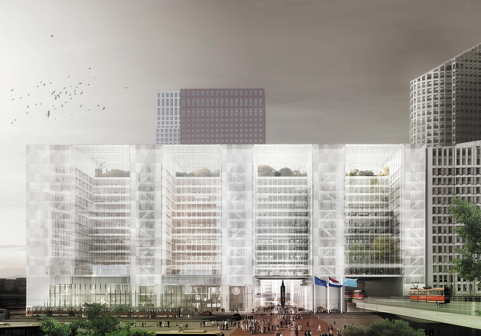 Rijnstraat 8 is an imposing structure next to the central station of The Hague. Originally designed by Jan Hoogstad as a ‘workspace of equality’ for the former Ministry of VROM, the 1992 building was introverted and lifeless from the outside. Within lay a repetitive layout of offices oriented towards a rigid core that connected a series of cold atriums. The renovation project opens up Rijnstraat 8 with new glass façades and bright rooftops, while the core and atriums work as a single, unified system. The building becomes a vibrant and user-friendly space for both tenants and neighbours, and a state-of-the-art workspace for thousands of government employees.