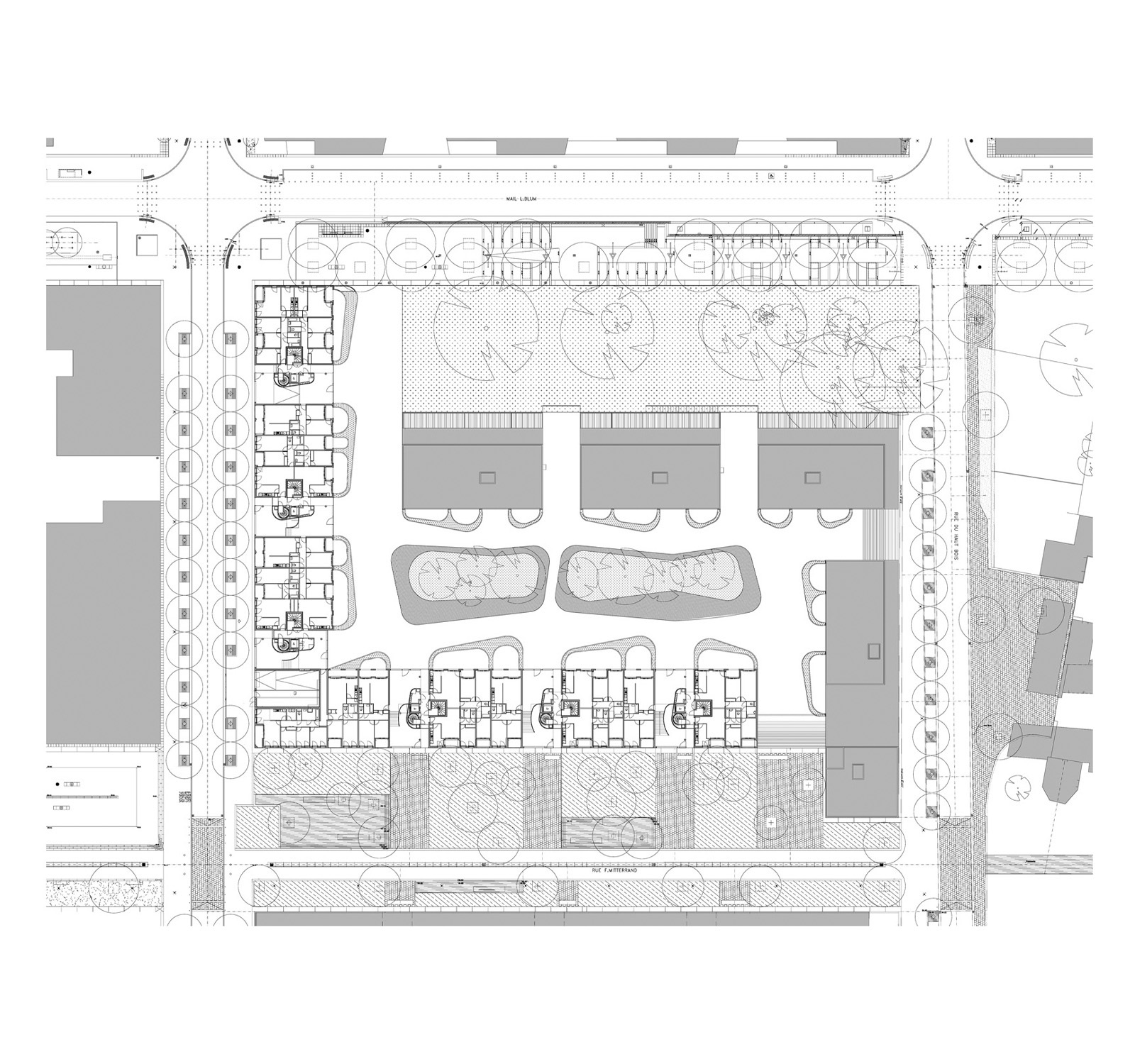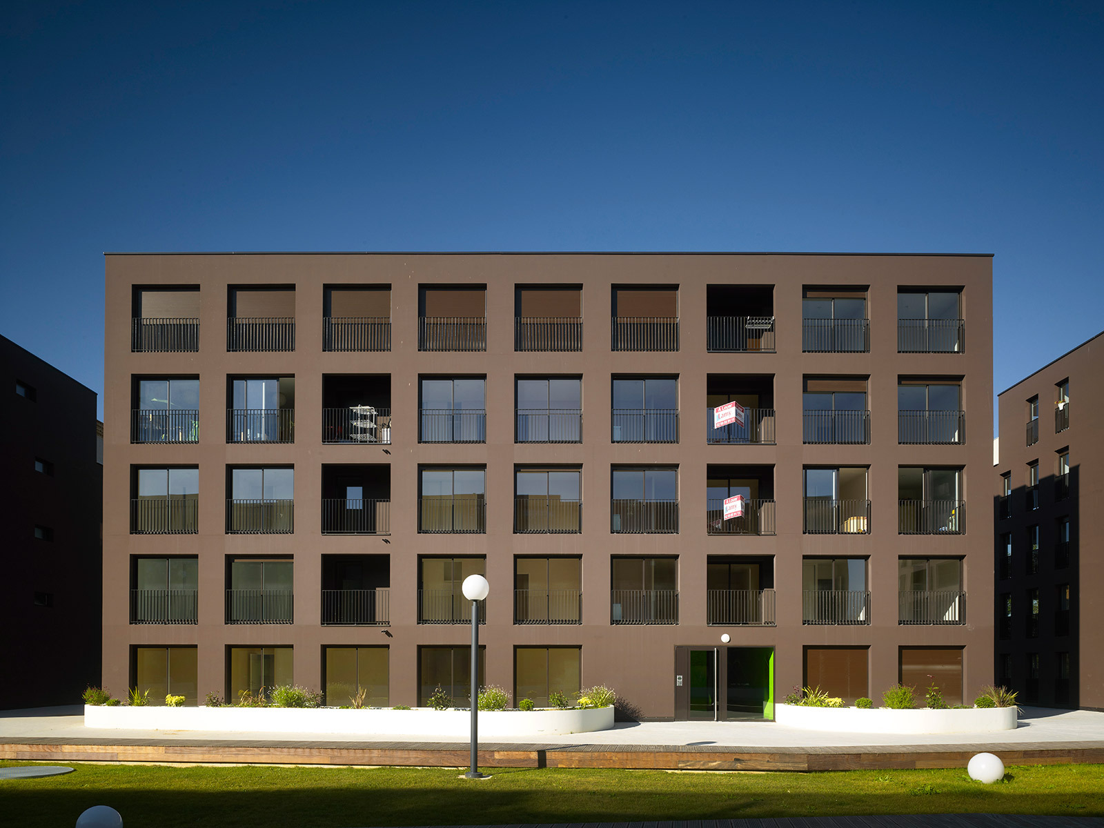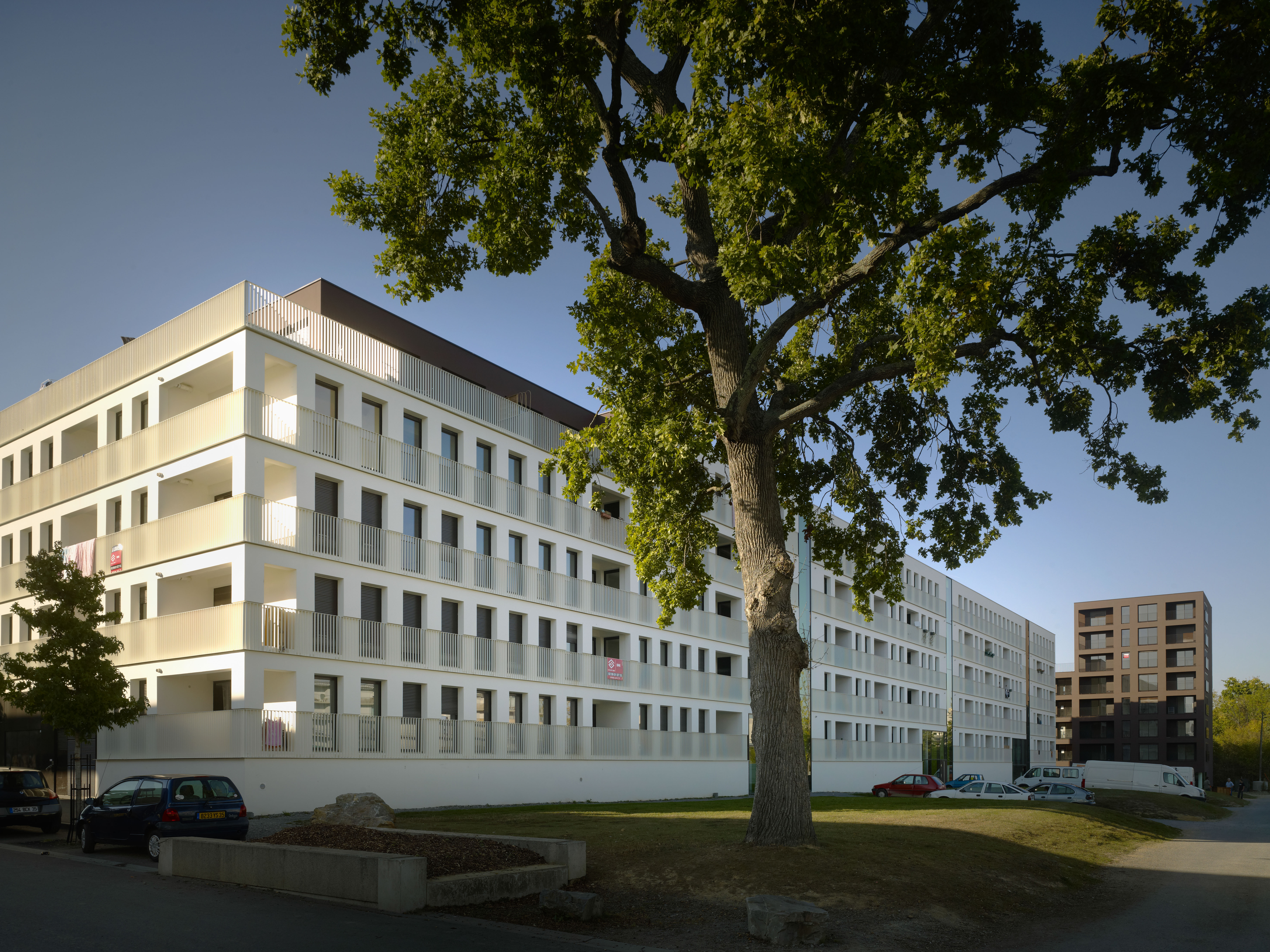 In Saint-Jacques-de-la-Lande, a 200-unit apartment complex was designed for the ZAC de la Morinais area to align with the master plan originally developed by Jean-Pierre Pranlas-Descours. The layout of private and public areas provides functional versatility and social diversity within the city.